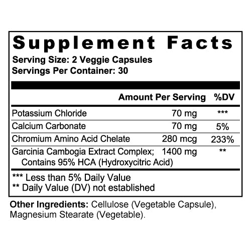 مركب غارسينيا كامبوغيا الذي يحتوي على 95% من حمض الهيدروكسي سيتريك هو مكمل شائع لفقدان الوزن **مدعوم بالأبحاث** ومشتق من فاكهة استوائية تسمى غارسينيا غومي جوتا. وقد ثبت أن التركيز العالي من حمض الهيدروكسي سيتريك في هذا المركب يساعد في فقدان الوزن عن طريق تثبيط إنزيم يساعد جسمك على تخزين الدهون. ومن المعروف أيضًا أنه يساعد في قمع الشهية وتحسين التمثيل الغذائي.
